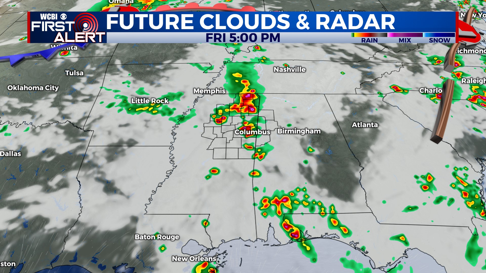 MONTGOMERY, Ala. (WSFA) – Skies have been mostly to partly cloudy today and afternoon highs warmed into the 70s for most. Clouds will prevail tonight and lows will hover in the 50s. A storm system will move into the region from the west, increasing rain and thunderstorm chances overnight and into the day on Monday. Showers and a few thunderstorms are in the forecast Monday. A few storms could pack a punch with damaging winds and hail. Highs will top out in the 70s and winds will be breezy. We will keep with a lingering shower or storm through the…